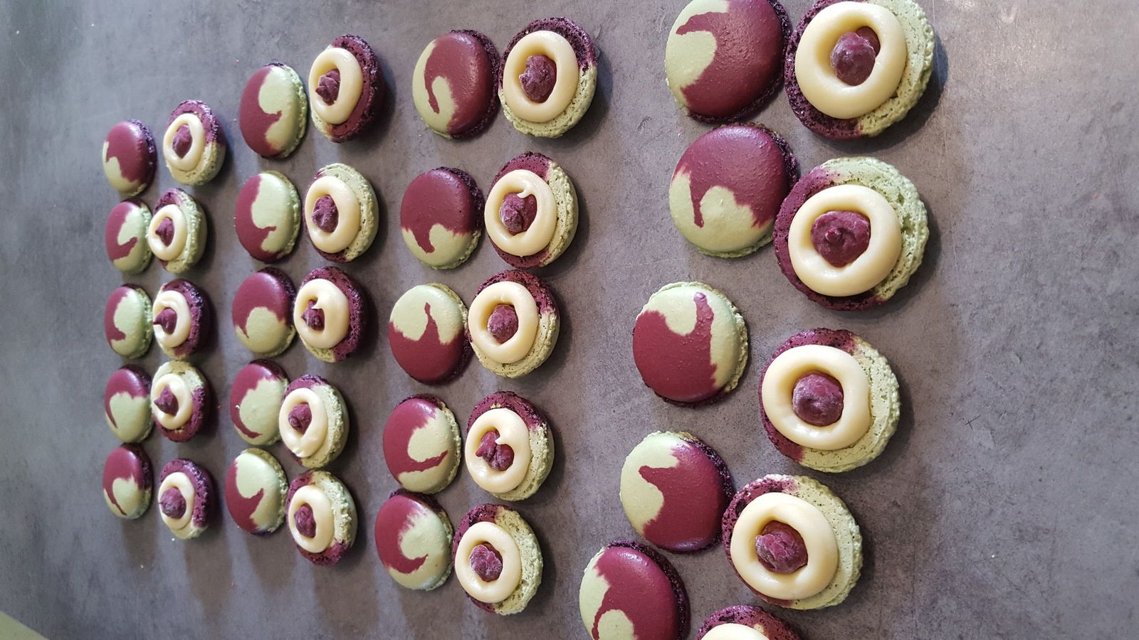 Il se compose d'une coque bicolore à la coco, d'une ganache citronnelle et d'un crémeux cassis, bref un délice !!!!