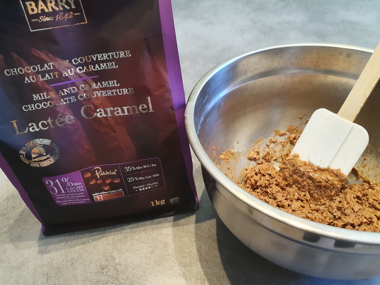 Pour le croustillant chocolat caramel :