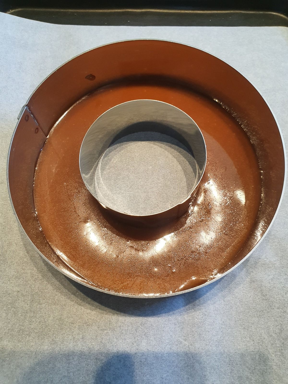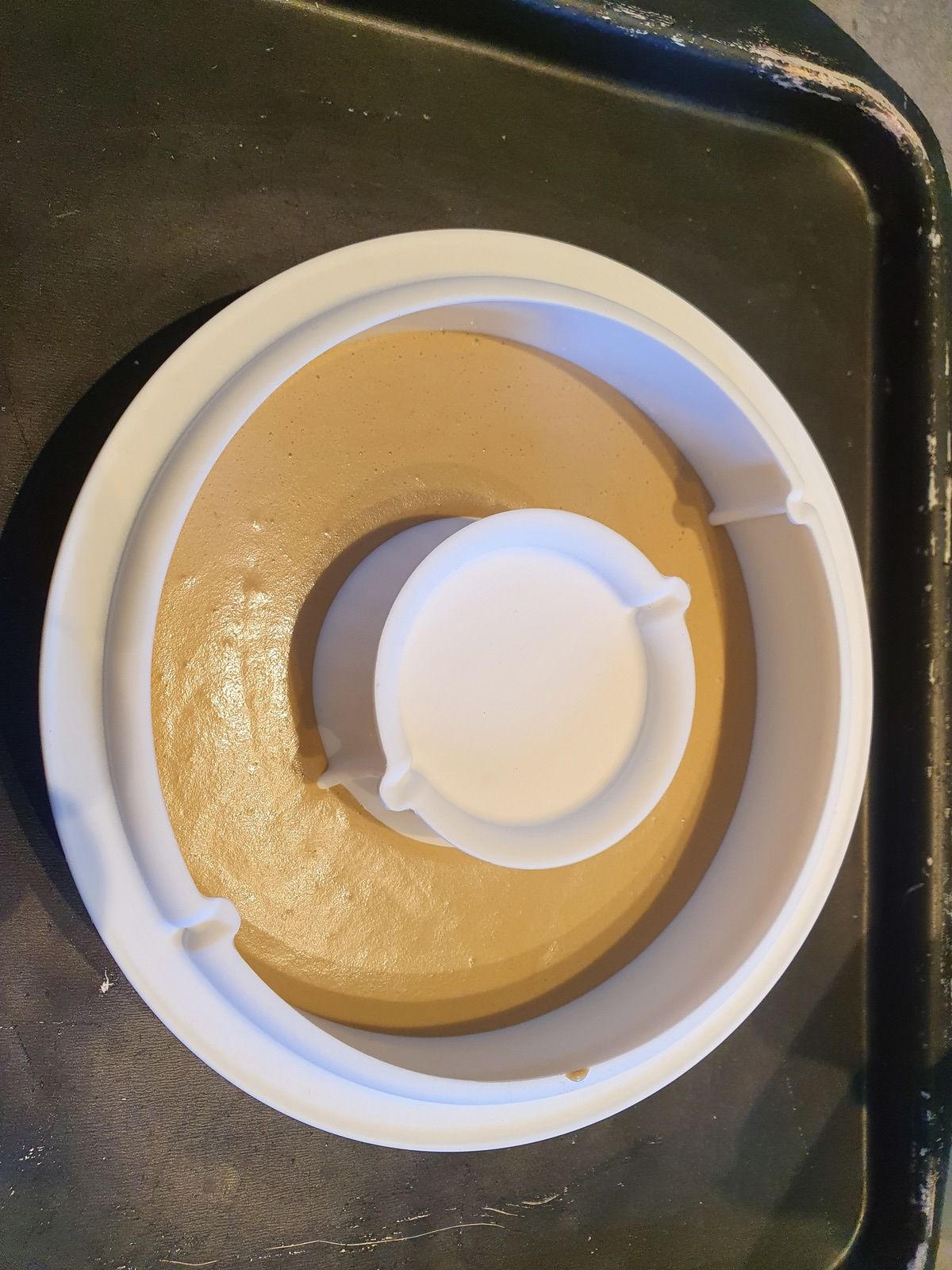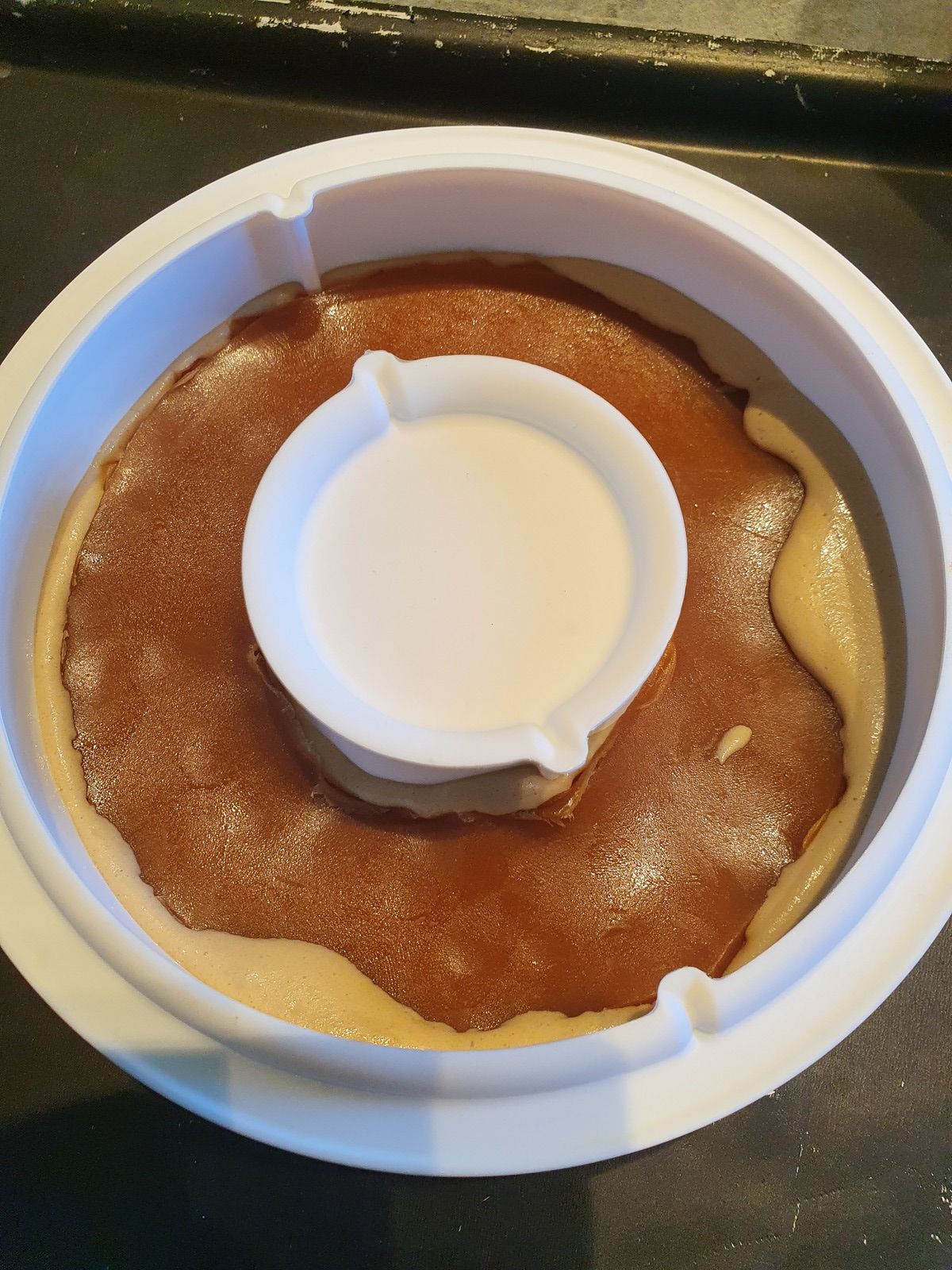 Ici, j'utilise un moule en silicone avec un trou au milieu, donc j'ai bricolé un peu ![]()