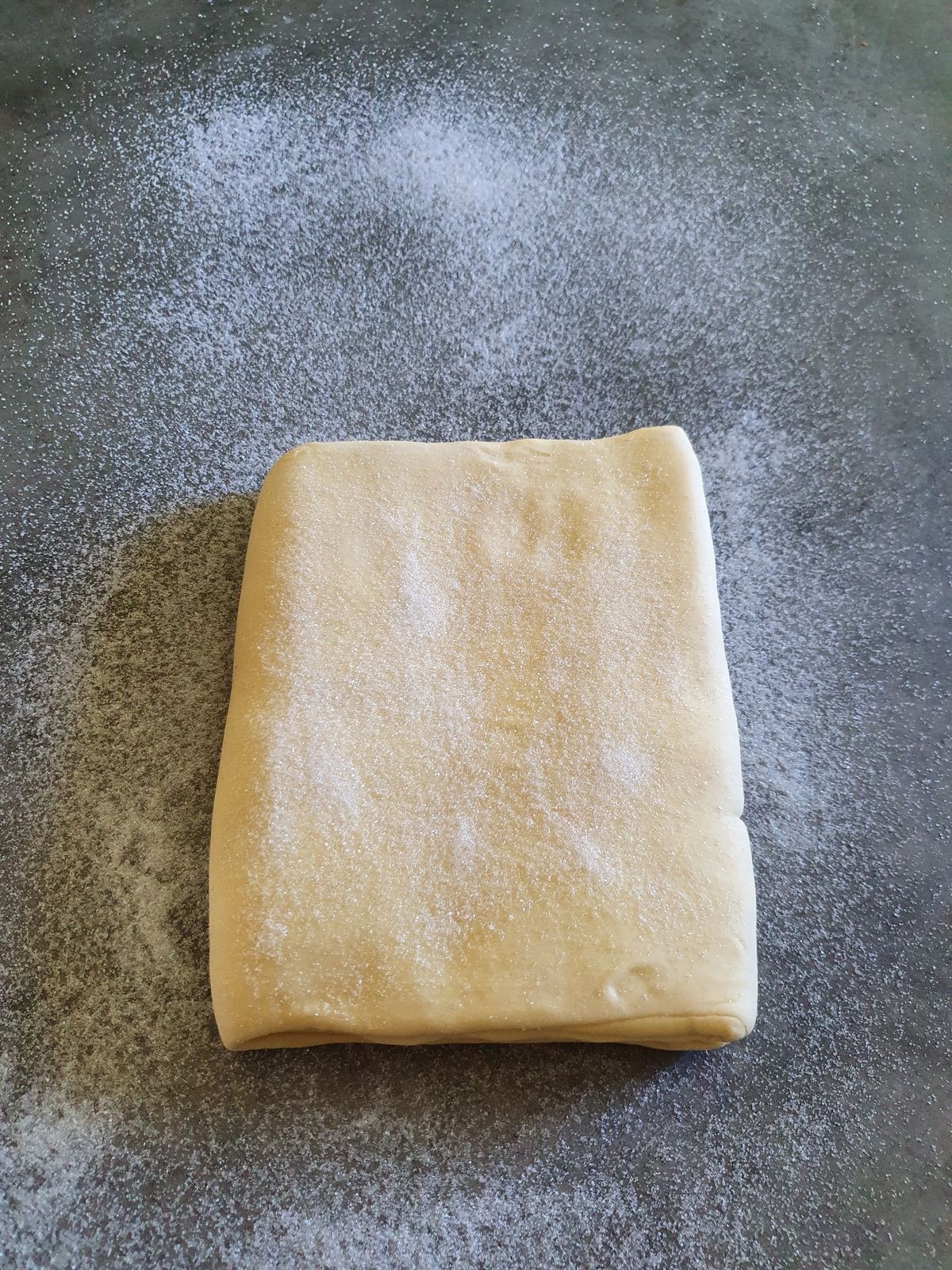 De nouveau au frais pour une demi-heure, puis étalez votre pâton en rectangle et pliez le comme sur la photo ci-dessous.