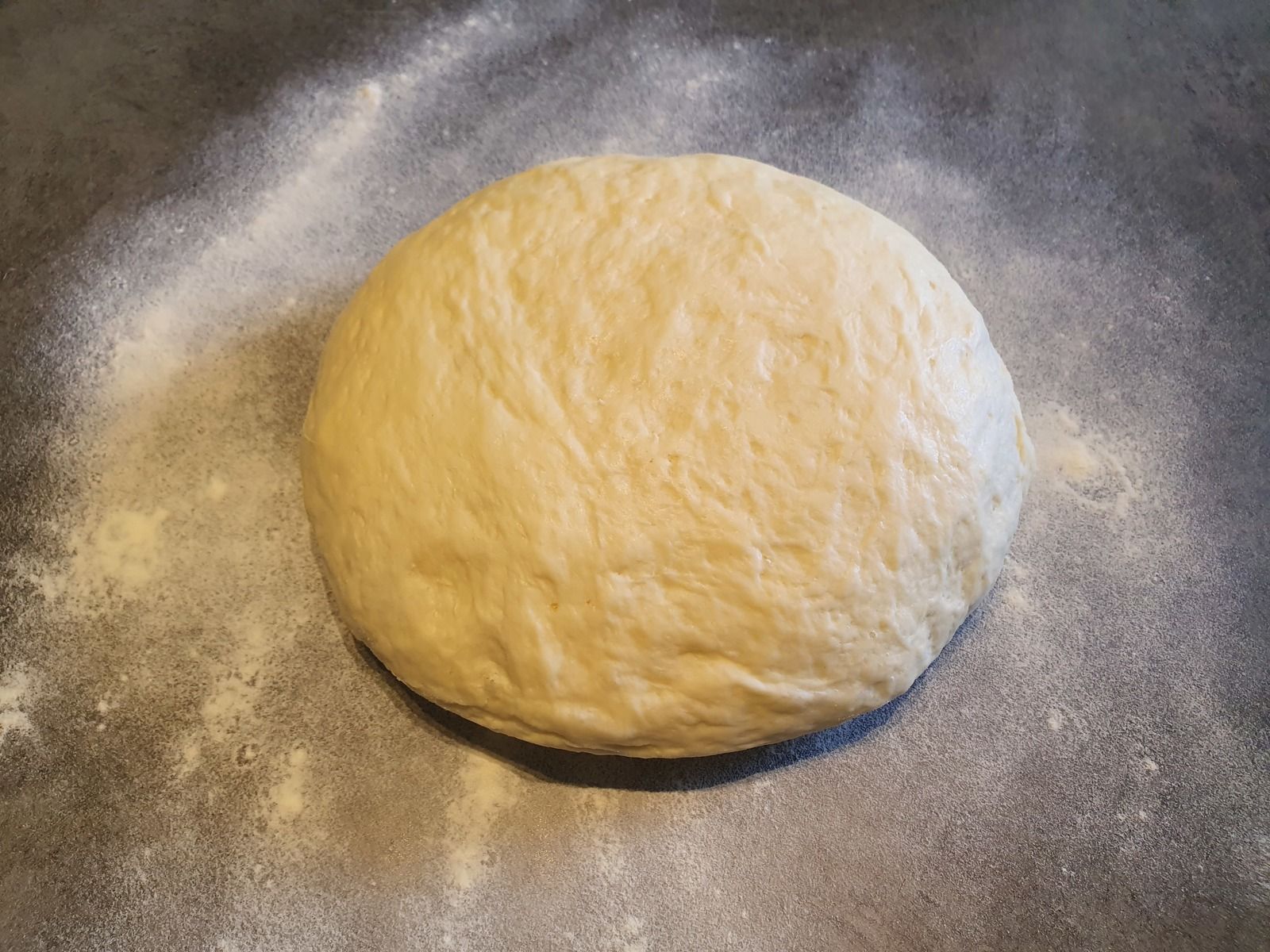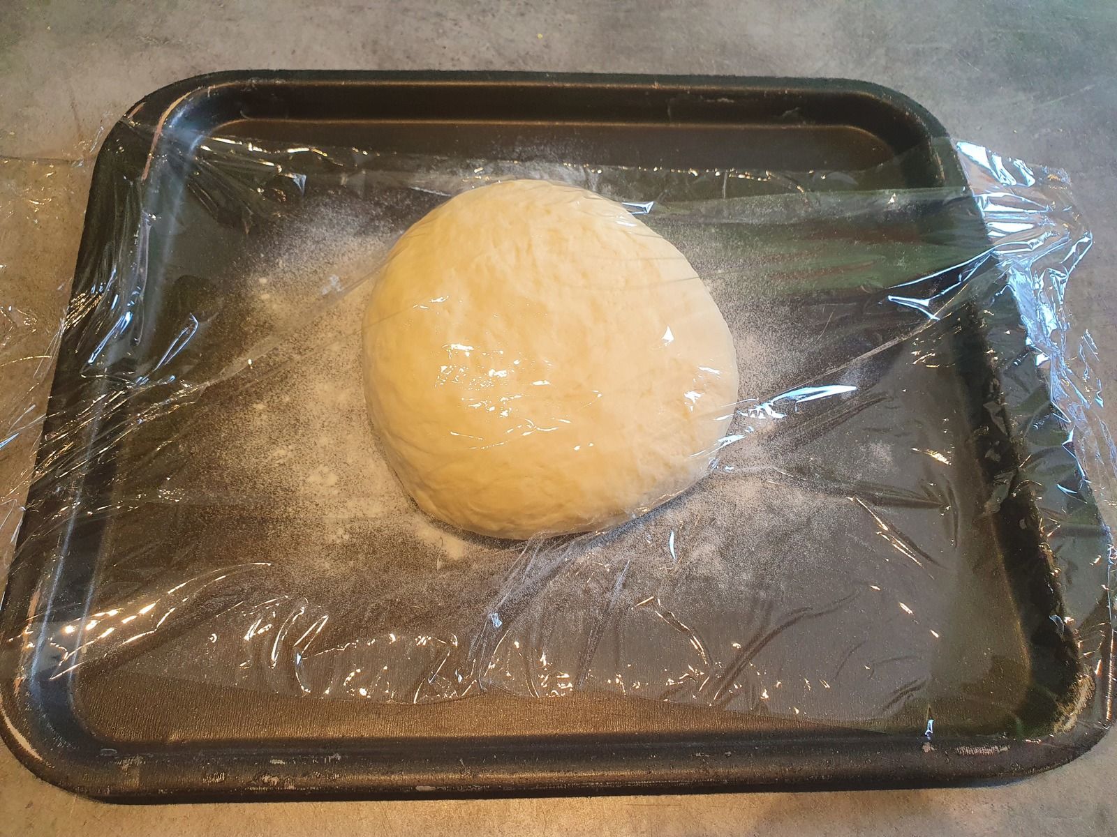 Formez une boule que vous poserez sur une plaque farinée, filmez (sans serrer) et laissez lever pendant une heure 30. Pour ma part je place la plaque dans le four éteint avec une petite tasse d'eau bouillante.