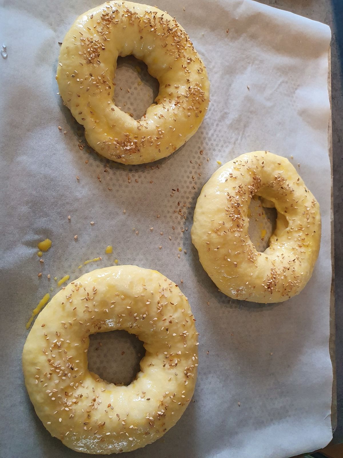 Une fois égouttés, disposez les sur votre plaque de cuisson et appliquez la dorure au pinceau, puis ajoutez les graines de votre choix.