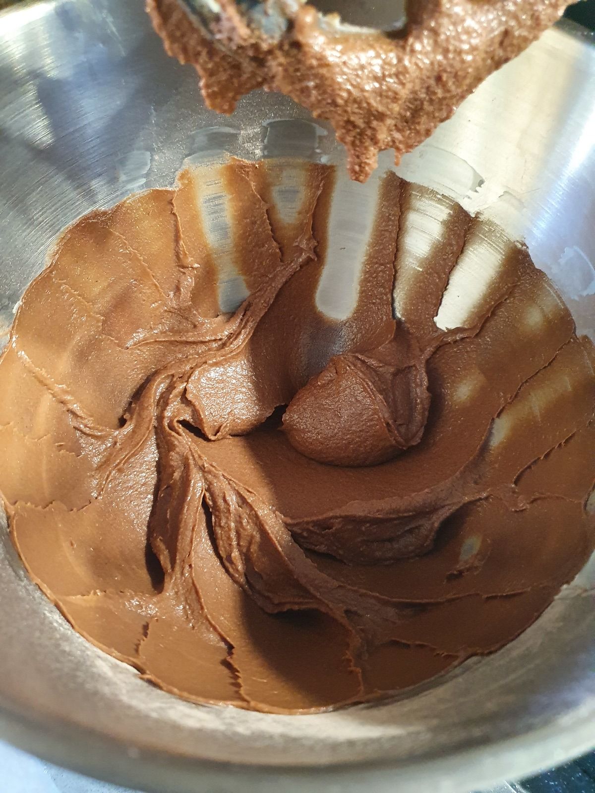 Même procédure que pour l'appareil cacahuète sauf qu'il faut tamiser le cacao avec la farine. Mettez en poche à douille.
