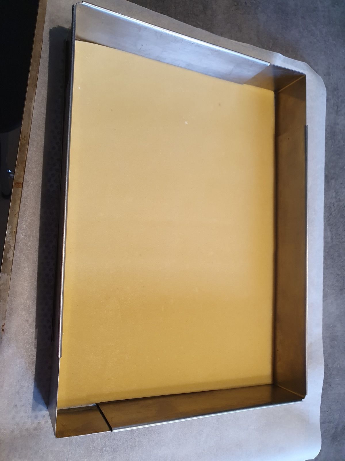 Gardez le fond de la cagette et mettez le dans un rectangle à pâtisserie réglable.