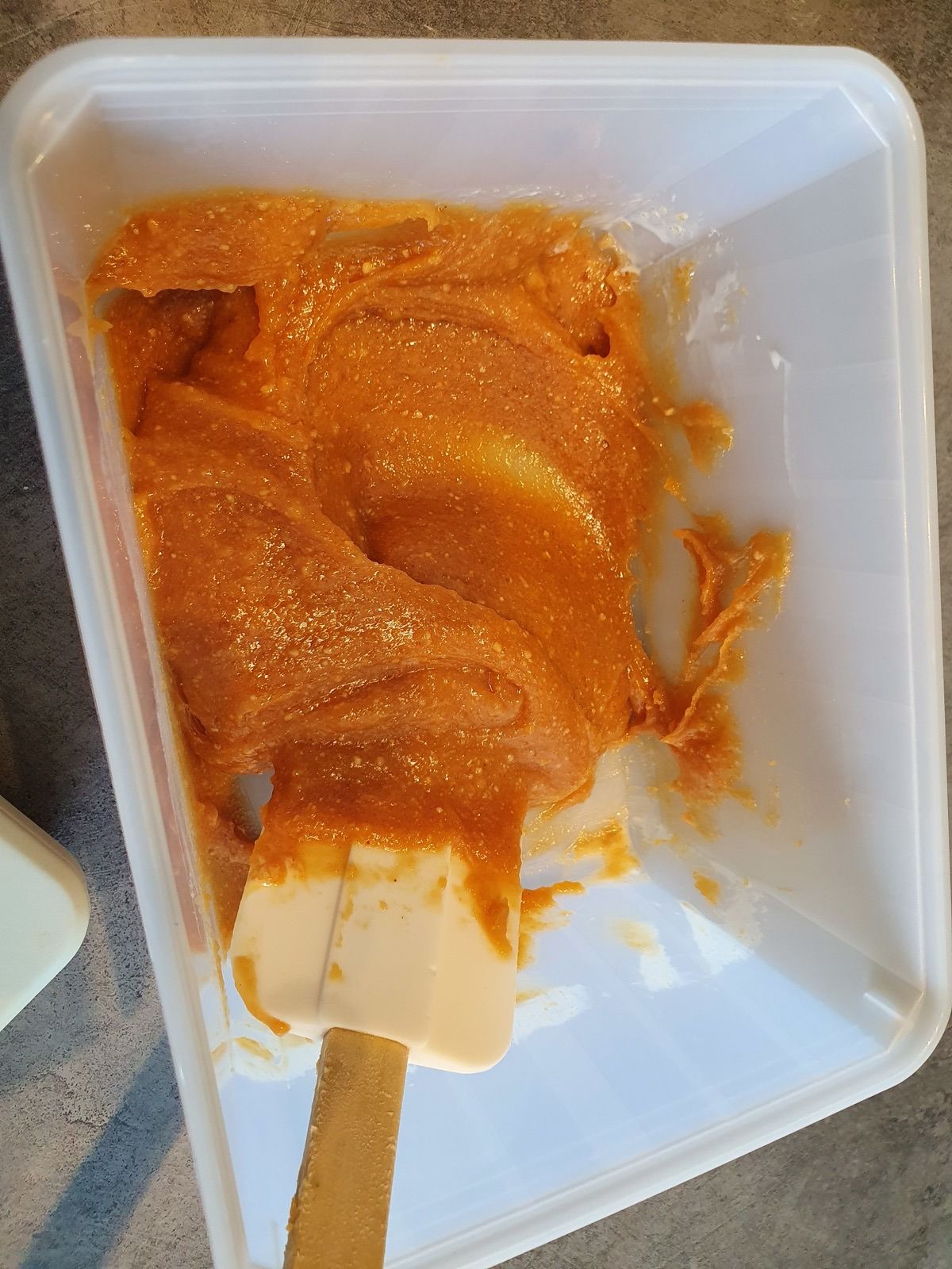 Cassez grossièrement et passez au mixeur jusqu'à obtenir une pâte liquide.