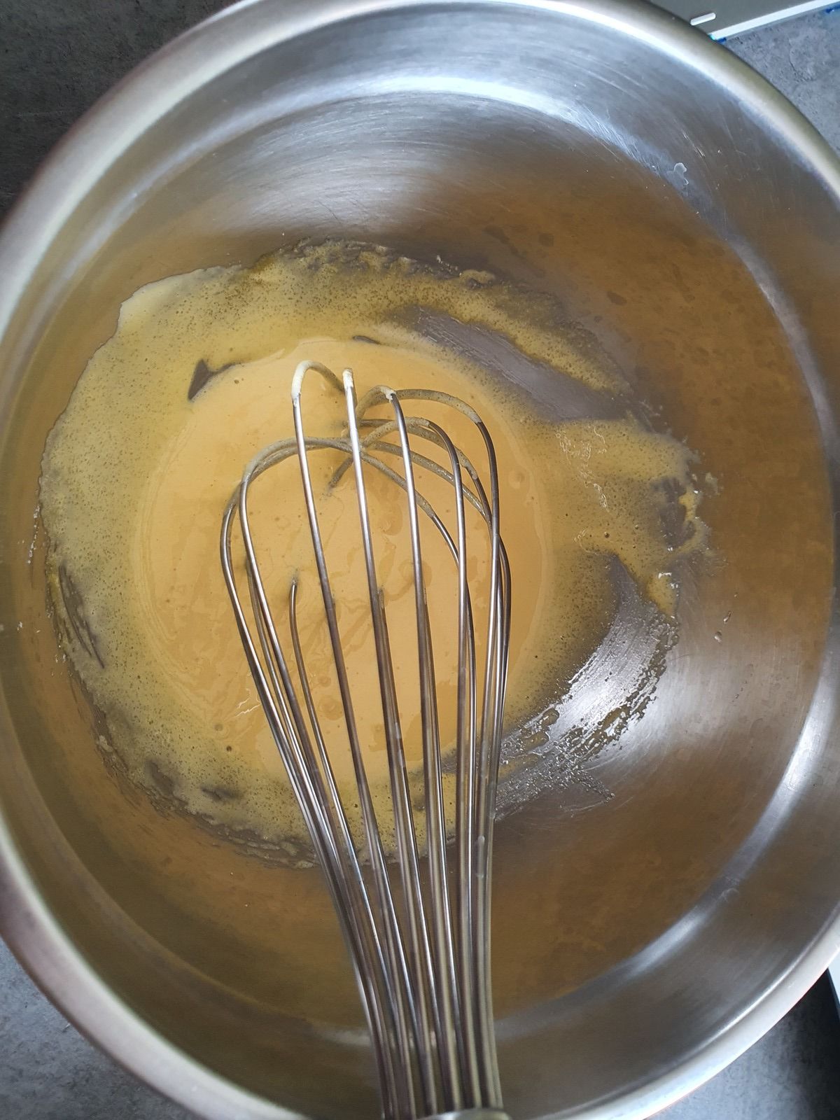Ajoutez le beurre fondu et refroidi et filtré si nécessaire.