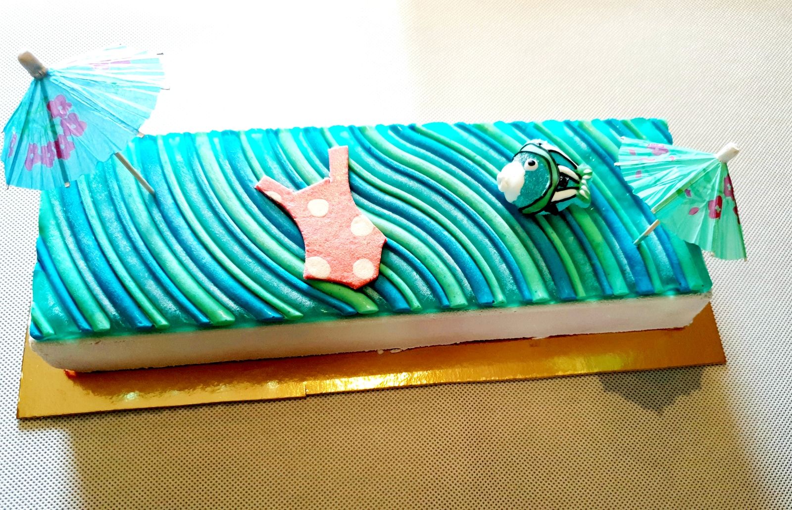 Comme c'était un thème piscine, j'ai décidé de colorer la base en blanc avec un pulvérisateur de beurre de cacao (très pratique mais ça en met un peu partout, protégez vos surfaces !!!)